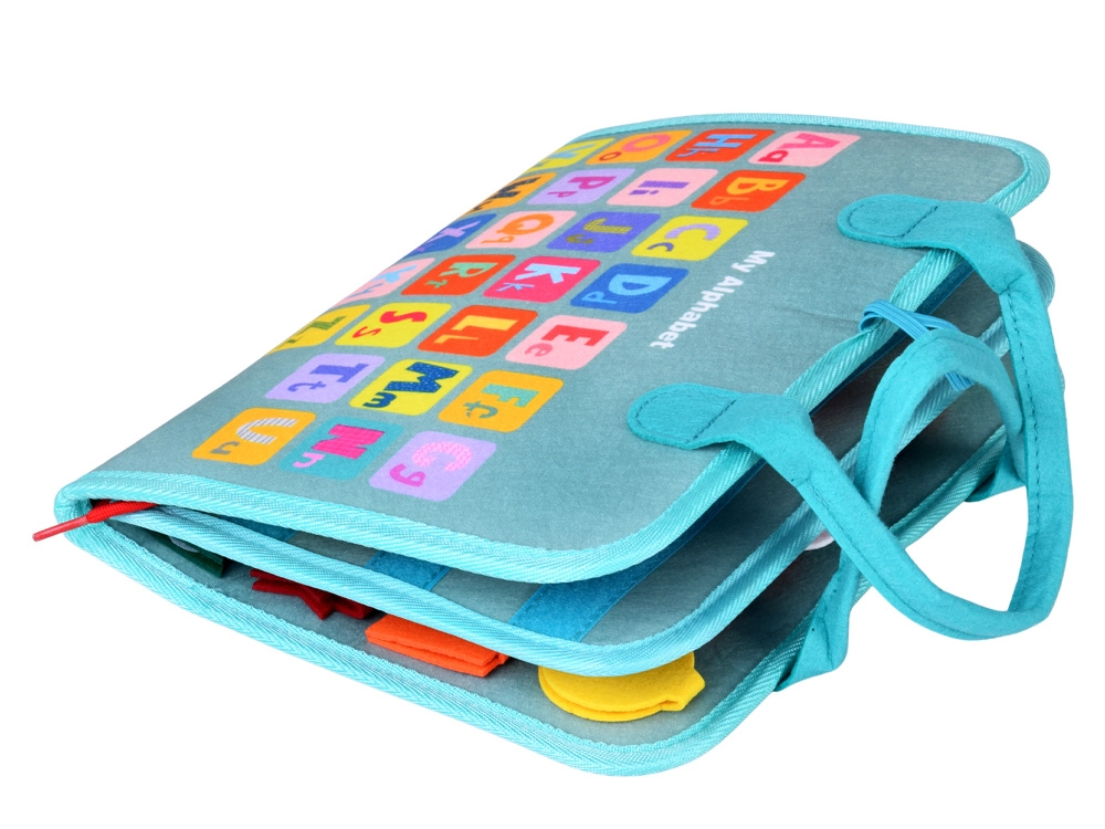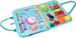 Ontdek een slimme educatieve speelgoedset geïnspireerd op de Montessori-methode. Het zachte vilten boek met sluiting via elastiek en knoop verbergt themapagina’s vol beweegbare elementen: klok met wijzers, ritsen, gespen, veters, tandwielen, schuifelementen, vormen en cijfers. Het kind traint op een natuurlijke manier fijne motoriek, concentratie en zelfstandigheid – zonder schermen en overal onderweg.