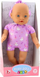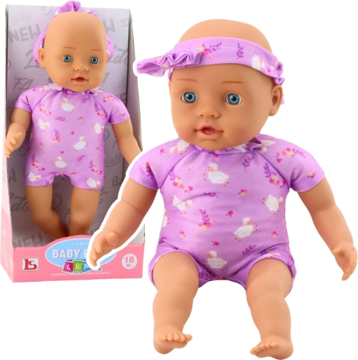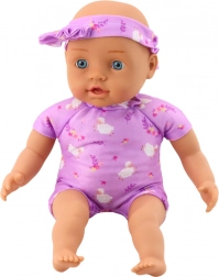 Een schattige babypop van 31 cm hoog die elk kind zal blij maken dat graag zorgt en gezinsspelletjes speelt. Ze heeft realistische gelaatstrekken, grote blauwe ogen en een zacht lichaam in een prettig paars rompertje met bloemmotief. Ze is licht in de hand, veilig en perfect geschikt om mee te knuffelen en om mee te nemen op reis.