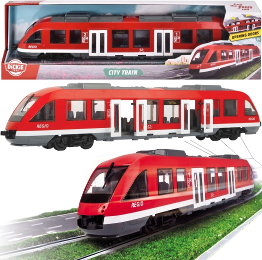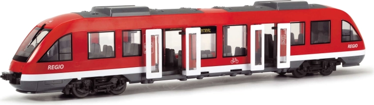 De realistische rode stadsregio-trein REGIO van DICKIE TOYS maakt kleine treinliefhebbers enthousiast. Hij heeft deuren die open kunnen met een draaiknop, vrij draaiende wielen voor soepel rijden op vlakke ondergronden en een gedetailleerd interieur met stoelen en een machinistencabine. Ideaal speelgoed voor kinderen vanaf 3 jaar met nadruk op realistische vormgeving en duurzaamheid.