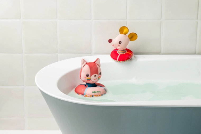 Maak van ieder bad een plezierig ritueel. Kat Jeanne en muis Nina van Lilliputiens drijven op hun ringetjes, wat kinderen boeit en tegelijk hun fijne motoriek en zintuiglijke waarneming ondersteunt. Het materiaal is aangenaam zacht en veilig voor de allerkleinsten.