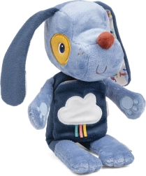 Het pluchen hondje Jules is een ideale speelgenoot voor de ontwikkeling van fijne motoriek, zintuiglijke waarneming en fantasie. Het zachte lijfje met fluweelzachte touch nodigt uit tot knuffelen, terwijl het stoffen boekje op de buik een klein verhaaltje biedt dat je kind thuis en onderweg bezighoudt. Gloeiende elementen op het wolkje en de pootjes geven een zachte gloed in het donker en dragen bij aan een gevoel van veiligheid bij het inslapen.