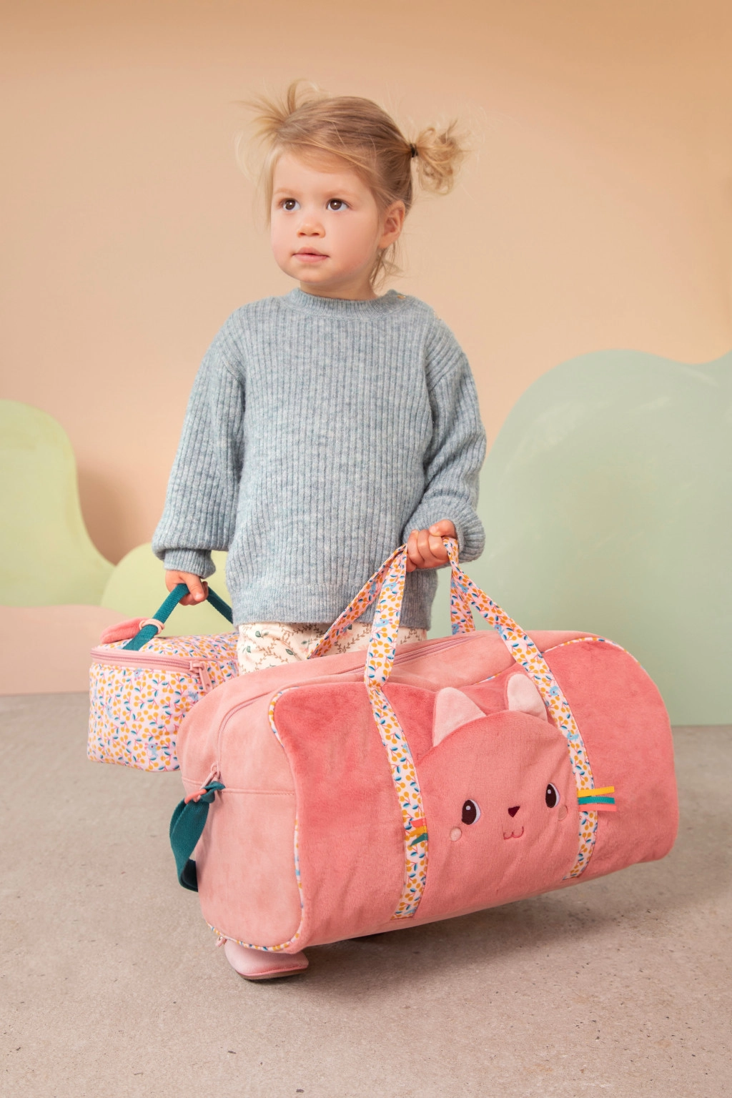 Lieve en praktische reistas voor kinderen vanaf 2 jaar met het motief van katje Jeanne van het merk Lilliputiens. Biedt een zachtroze design, zacht en stevig materiaal en comfortabel dragen in de hand en over de schouder. Dankzij de afmetingen 45 × 23 × 25 cm voldoet hij aan de cabine-eisen en kan hij in de wasmachine op 30 °C worden gewassen.