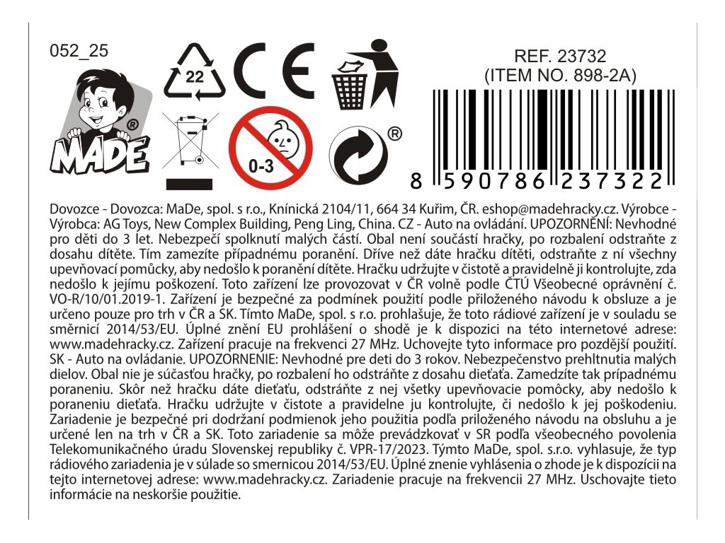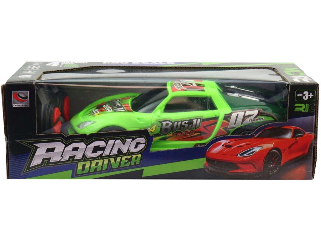 Deze RC-auto op schaal 1:20 biedt kinderen volop plezier en actie. Dankzij de eenvoudige controller met lange antenne is de bediening intuïtief – vooruit/achteruit en links/rechts. De stevige kunststof carrosserie met opvallende race-elementen, spoiler en coole stickers benadrukt de sportieve look.