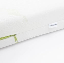 Gun je baby een gezonde slaap op een keerbare matras met lagen van boekweit, polyurethaanschuim en kokos. De combinatie van materialen zorgt voor orthopedische ondersteuning, antiallergische eigenschappen, uitstekende ademendheid en vochtregulatie. De zachte hoes met Aloe Vera-extract is vriendelijk voor de gevoelige babyhuid en eenvoudig te onderhouden.