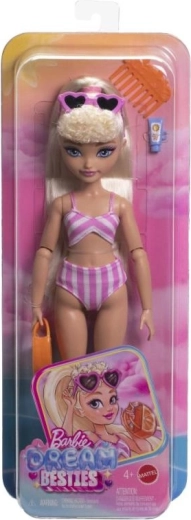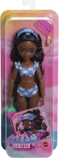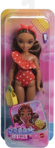 De stijlvolle BARBIE Dream Besties-pop brengt volop zomerse vibes in het spel. Ze heeft lang, vol haar dat geschikt is om te kammen en kapsels te maken, verstelbare armen en benen voor makkelijk poseren en een gekleurde badset met ruches die haar unieke stijl benadrukt. Accessoires met strandthema inspireren tot eindeloze verhalen aan zee en thuis.