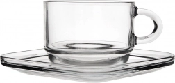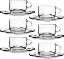 De set is gemaakt van duurzaam glas voor een lange levensduur en comfortabel dagelijks gebruik. Het ergonomische oor zorgt voor een zekere grip, de schoteltjes vangen druppels op en bieden plaats aan een lepeltje of koekje. Dankzij de vaatwasmachinebestendigheid is het onderhoud uiterst eenvoudig.