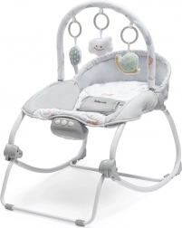 Praktische en comfortabele 2-in-1 wipstoel voor baby’s vanaf de geboorte. Biedt schommelen met vergrendeling, trillingen, melodieën en lichteffecten voor zowel kalmering als vermaak. Dankzij de verstelbare rugleuning, afneembare speelboog met speeltjes en driepuntsgordel is hij veilig en comfortabel. Als wipstoel geschikt tot 9 kg, als stoeltje tot 18 kg.
