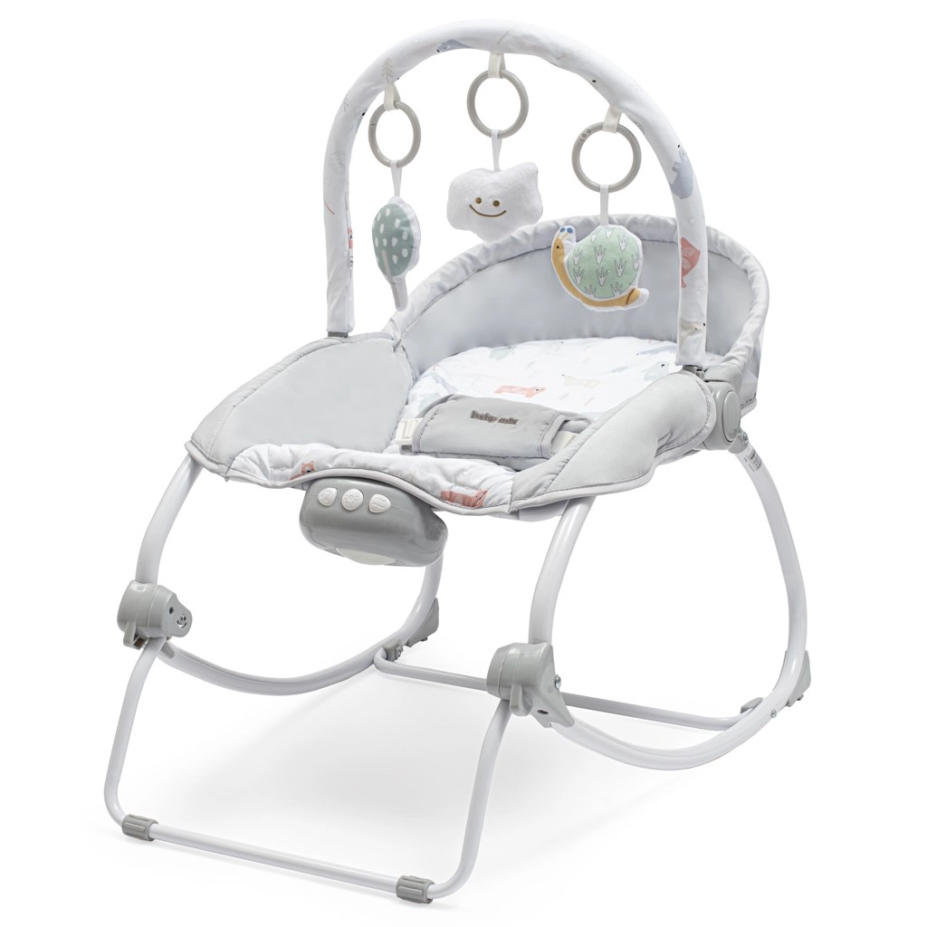 Een veelzijdige hulp in elk huishouden: de BABY MIX Slak wipstoel gebruik je vanaf de eerste levensdagen tot in de peuterleeftijd. Biedt zacht schommelen met de mogelijkheid tot vergrendeling in een vaste positie, ideaal voor kalmeren en slapen, maar ook voor voeden of spelen. Het geïntegreerde paneel met geluiden, licht en trillingen helpt een aangename en rustgevende omgeving te creëren.