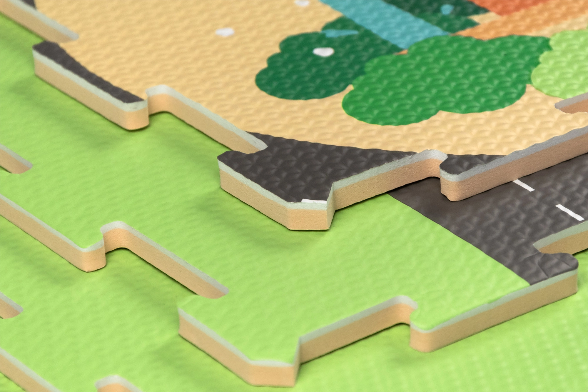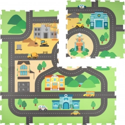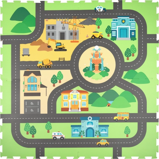 De educatieve schuimpuzzel van HUMBI combineert leren en spelen in één. Dankzij de bedrukte wegen en gebouwen creëren kinderen eenvoudig hun eigen stad, plannen routes en prikkelen de verbeelding. Het oppervlak is zacht, dempt schokken en beschermt tegen kou van de vloer.