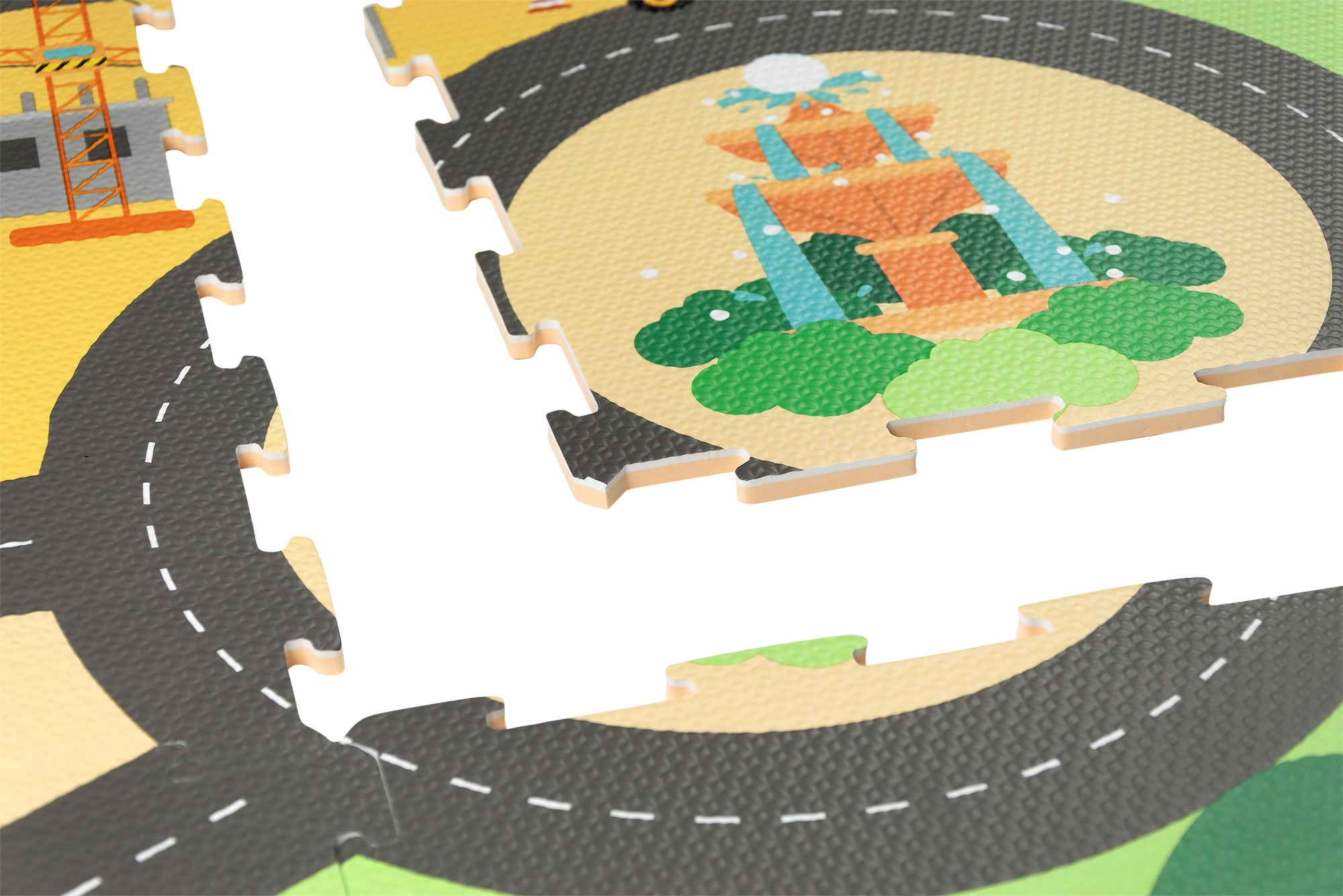 Ontdek de leuke en veilige HUMBI-schuimrubberen speelmat met stadswegenmotief. De set van 4 grote delen vormt een oppervlak van ca. 120 × 120 cm en biedt een zachte, isolerende en antislip ondergrond om op te spelen. Kinderen kunnen hun eigen stadje en wegen samenstellen en zo creativiteit en fijne motoriek ontwikkelen. Gemaakt van duurzaam EVA-schuim zonder ftalaten, formamide, BPA en PVC.