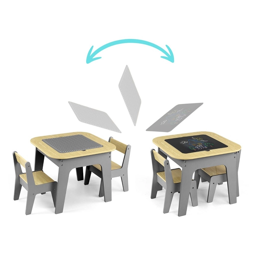 - Multifunctionele 2-in-1 tafel – bouwplaat voor blokken en krijtbord.