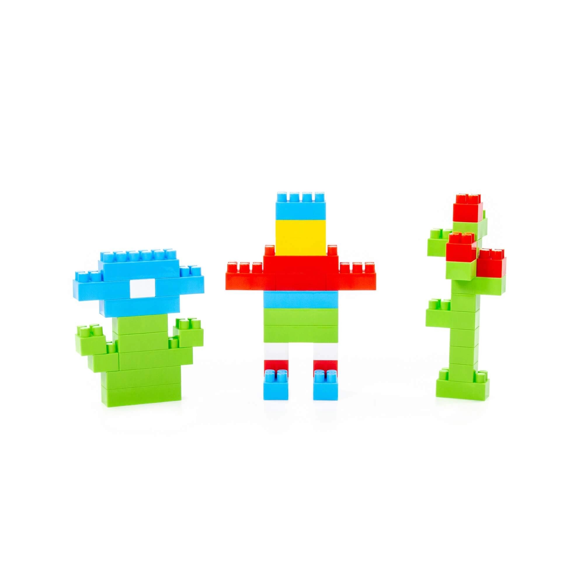 Grote, kleurrijke blokken laten kinderen verschillende modellen maken en ontwikkelen fantasie en fijne motoriek.