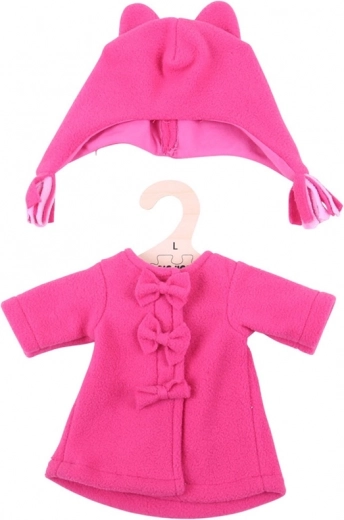Deze stijlvolle kledingset voor poppen van 38 cm bevat een zacht roze jasje met decoratieve details en een bijpassend mutsje. Dankzij de zachte textieluitvoering zijn de kleertjes gemakkelijk aan te trekken, ook voor jongere kinderen, en voelen ze prettig aan. De praktische hanger helpt orde te houden in de speelhoek en leert kinderen voor hun speelgoed te zorgen.