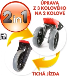 Kwalitatieve stilrollende banden glijden niet weg, ergonomische sturen met verbrede uiteinden beschermen de handen, en de begrensde draaicirkel van de voorvork verhoogt de veiligheid. Duurzame, onschadelijke kunststof met gladde verbindingen is eenvoudig te onderhouden – lauw water en een beetje zeep volstaan.