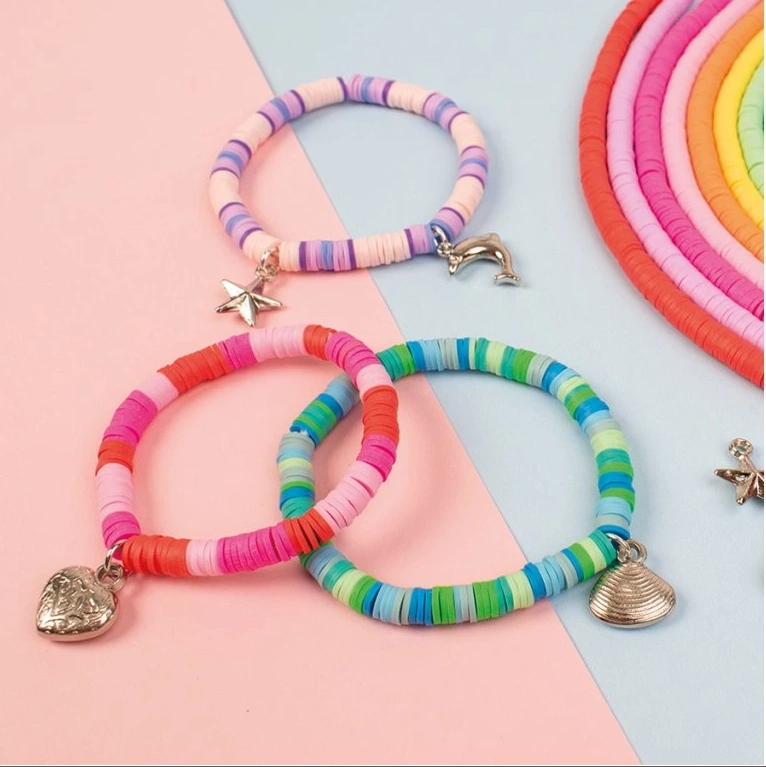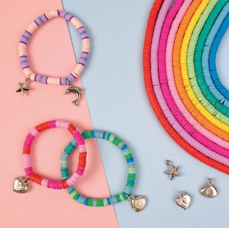 Ontdek je creativiteit met de uitgebreide set heishi kralen van het merk PLAYBOX. In de verpakking vind je ca. 3500 platte polymeerkralen van 4 mm in 23 kleuren, een praktische kunststof organizer en een witte elastiek om te rijgen – ideaal voor armbanden, kettingen en decoraties met een boho- en etno-touch.