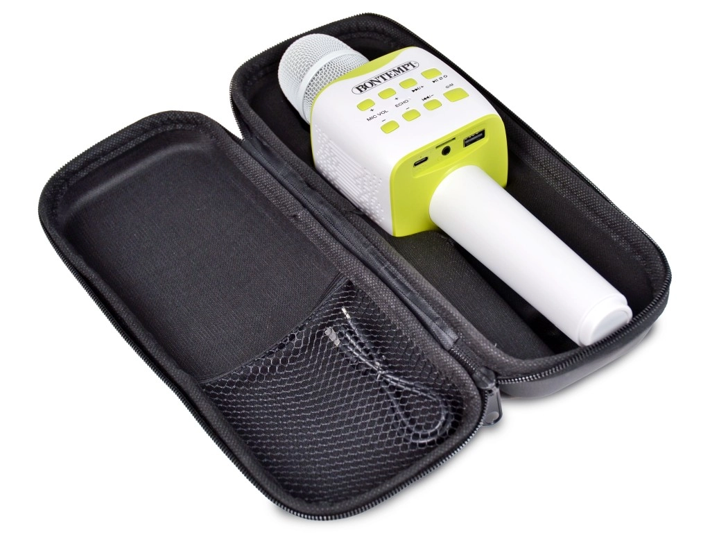 De gebruiksvriendelijke bediening met volumeregeling en echo-effect wordt aangevuld met een leuk stemvervormer-effect dat elk optreden tot leven brengt. De ingebouwde lithiumbatterij levert voldoende energie voor langdurig gebruik zonder kabels.