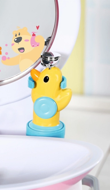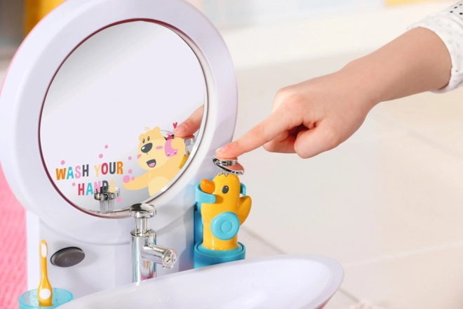 Leer kinderen goede hygiënegewoontes via spel. De wit-roze BABY born poppenwastafel biedt licht- en geluidseffecten, een echte waterstraal bij het indrukken van de kraan en schattige accessoires voor complete verzorging. Wanneer de spiegel oplicht, klinkt een melodie die dient als speelse timer voor het handen wassen.