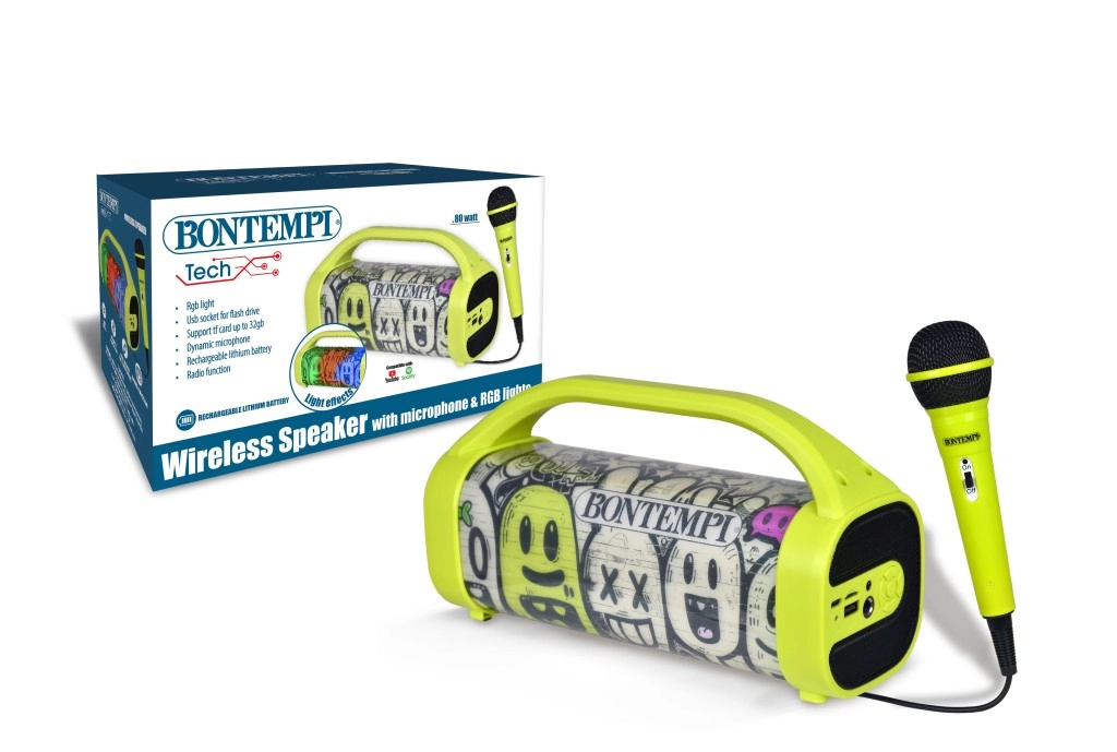 Maak eenvoudig en snel je eigen karaoke thuis. Deze draadloze luidspreker met meegeleverde dynamische microfoon levert helder, uitgesproken geluid en opvallende LED-verlichting die elk feest laat schitteren. Dankzij Bluetooth koppel je de luidspreker in een handomdraai met je telefoon of tablet.