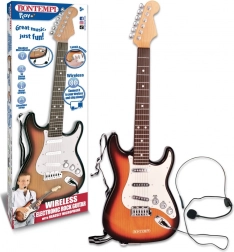Start thuisconcerten met deze elektrische kindergitaar met draadloze verbinding, microfoon en headset. Dankzij de touch-demo functie starten kinderen met één tik voorbeeldnummers. Inclusief schouderriem voor comfortabel spelen en een aantrekkelijk design dat motiveert tot het ontwikkelen van muzikaal talent en ritme.