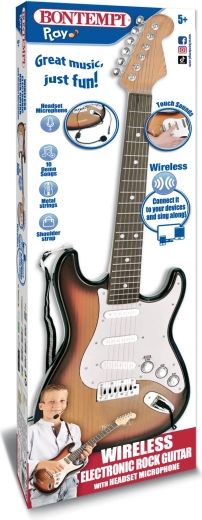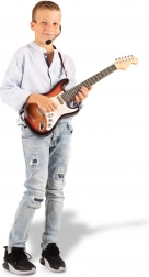 Deze stijlvolle elektrische kindergitaar is ideaal voor de eerste stappen in de muziekwereld. Dankzij de draadloze verbinding genieten kinderen van vrije beweging tijdens het spelen en zingen. In de set vind je een microfoon met headset en een praktische schouderriem voor een authentieke concertbeleving.