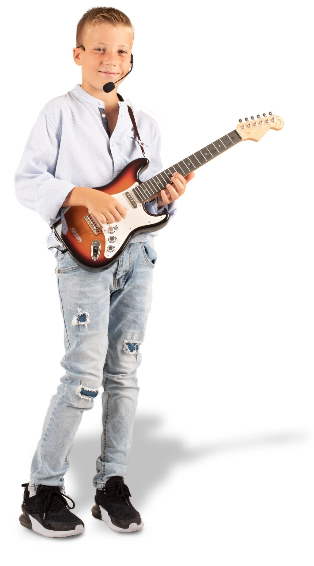 - Complete set: gitaar, microfoon, headset en schouderriem.