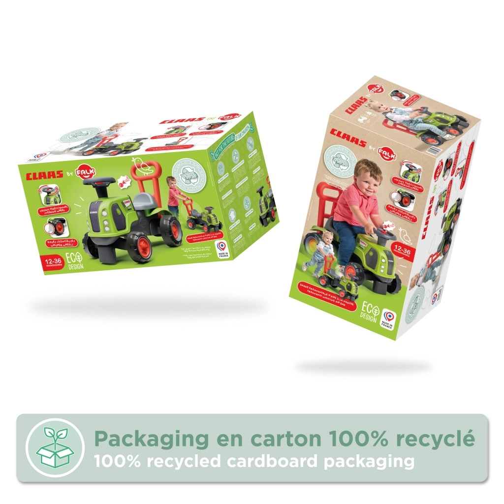 De kinderlooptractor CLAAS is een geweldige keuze voor kleine bestuurders vanaf 12 maanden. Hij biedt stille wielen voor spelen binnen en buiten, een stuur met richtingfunctie voor gemakkelijk bedienen, een claxon voor extra plezier en brede, stabiele wielen voor veilig rijden. Gemaakt in Frankrijk van hoogwaardige gerecyclede kunststoffen, met een draagvermogen van 25 kg.
