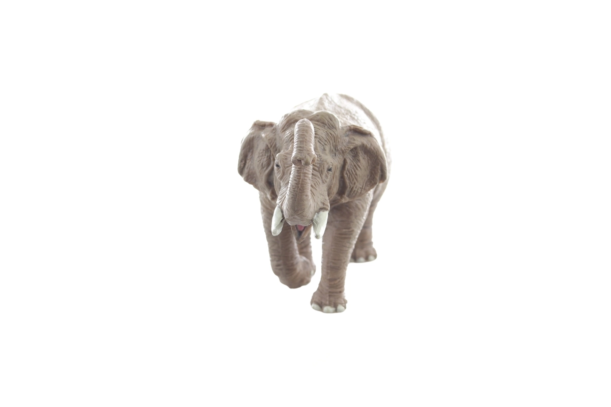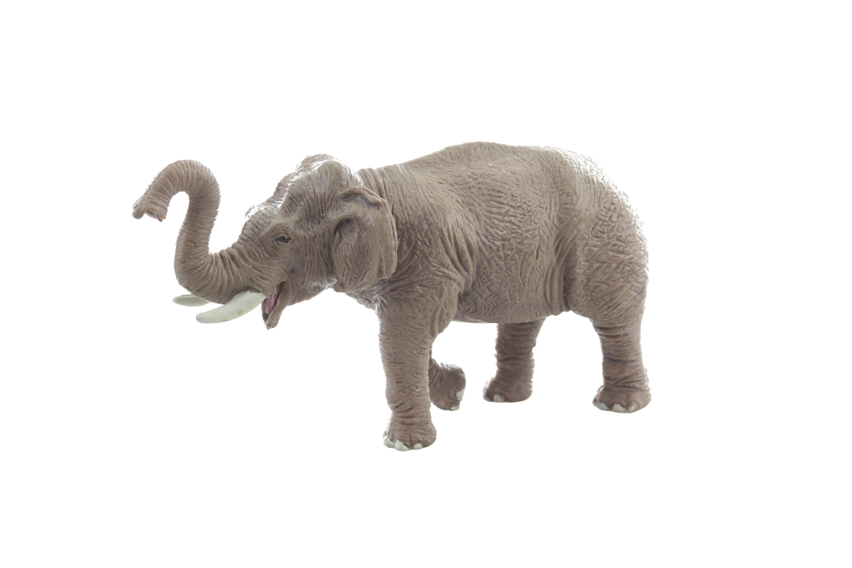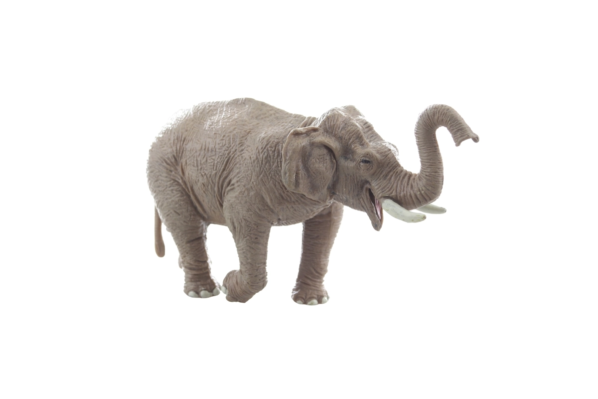De gedetailleerde huidtextuur, opgeheven slurf en opvallende slagtanden stimuleren de verbeelding en educatief spel.