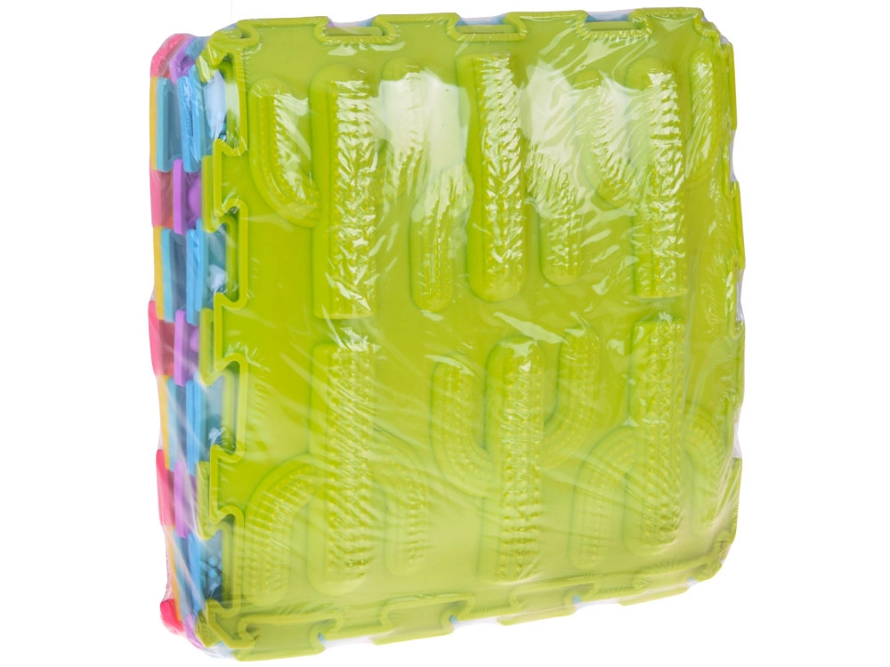 De sensorische mat bestaat uit acht koppelbare tegels (24,5 × 24,5 cm, dikte ca. 1 cm) met gevarieerde texturen – cactussen, blaadjes met lieveheersbeestjes, schelpen, bloemen en diverse koepeltjes en stippen. De afzonderlijke tegels zijn vrij te combineren tot een rechthoek, baan of bijna vierkant, zodat je de mat eenvoudig aanpast aan ruimte en activiteit.