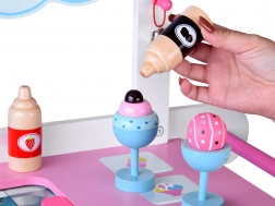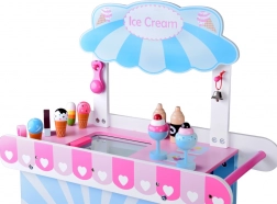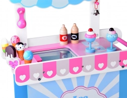 Een schattige houten ijskraam in pasteltinten die elke kleine verkoper zal verrukken. Dankzij de grote verrijdbare wielen, het ruime werkblad en de rijke set accessoires biedt hij uren creatieve speelpret. Veilige niet-giftige verven en een stevige constructie zorgen voor een lange levensduur en comfortabel spelen, zowel thuis als in de tuin.