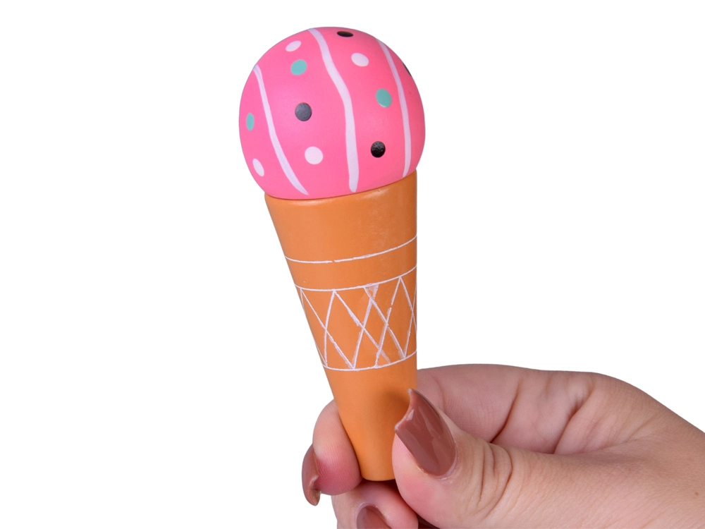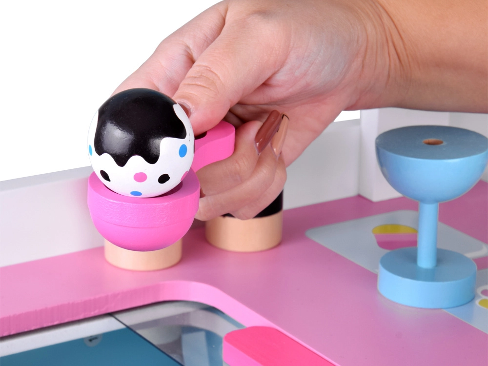 - Stabiele bevestiging: bollen en ijsjes in hoorntjes en bekers worden met hulpstukjes vastgezet; ze blijven goed zitten en zijn makkelijk te verwijderen.