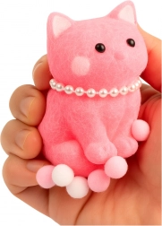 Dit schattige roze squishy katje is een heerlijk zachte, sensorische speelgoed dat helpt stress te verminderen, te ontspannen en je op elk moment van de dag te vermaken. Gemaakt van een zacht, elastisch materiaal dat prettig aanvoelt, met een harig oppervlak en versierd met een parel “ketting” en wit-roze pompons voor een extra schattige look.