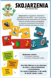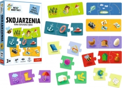 Het educatieve spel Associaties uit de reeks KLEINE ONTDEKKER van TREFL begeleidt de jongste spelers in de wereld van logische verbanden. Met behulp van eenvoudige paren en illustraties leren kinderen wat bij elkaar hoort en ontwikkelen ze hun woordenschat en beschrijvend vermogen.