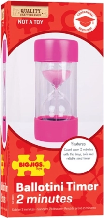 Stevig en duurzaam vangt de zandloper van Bigjigs Toys de aandacht met zijn unieke constructie. De interne glazen zandkamer is beschermd door een stevige plastic buitenkant, die absolute veiligheid biedt.