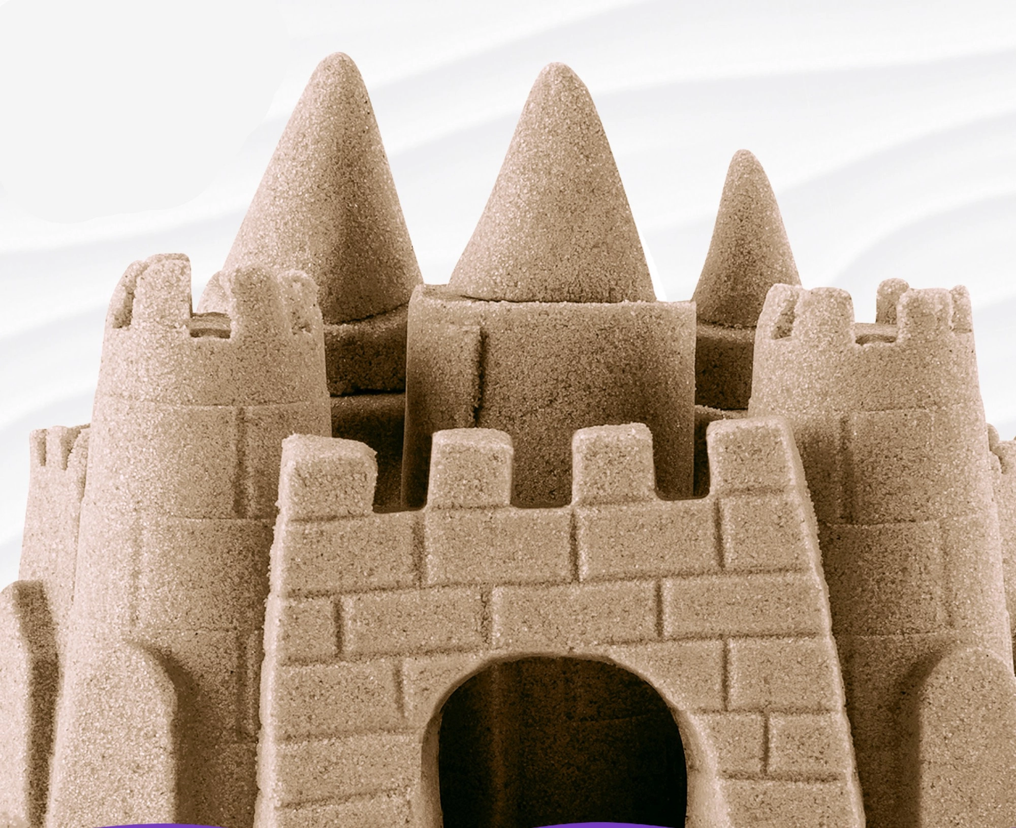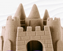 De korrels trekken elkaar aan, waardoor het zand samenhangend en vormbaar is en minder rommel geeft. Ideaal voor het bouwen van kastelen, letters en gedetailleerde vormen.