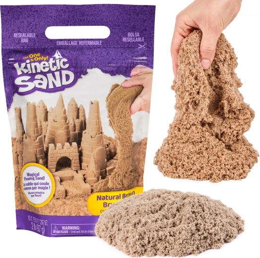 Kinetisch zand in een bruine tint biedt een rustgevende sensorische ervaring voor zowel kinderen als volwassenen. Het is aangenaam los maar samenhangend – het stroomt langzaam tussen je vingers door en behoudt tegelijk uitstekend zijn vorm, zodat je letters, torens, vormpjes en gedetailleerde bouwwerken kunt maken. Het droogt niet uit, is makkelijk op te ruimen en stofvrij tijdens het spelen.
