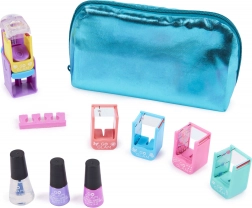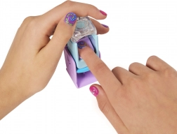 In de doos vind je 5 designcassettes (eenhoorn, zeemeermin, letter E, tie-dye geometrie, hartje), 2 gekleurde lakken, een Top Coat voor fixatie, een vingerspreider en een stijlvol cosmetica-etui. De decoratie werkt op verschillende vormen en maten nagels – perfect voor beginners en jonge stylisten vanaf 8 jaar.