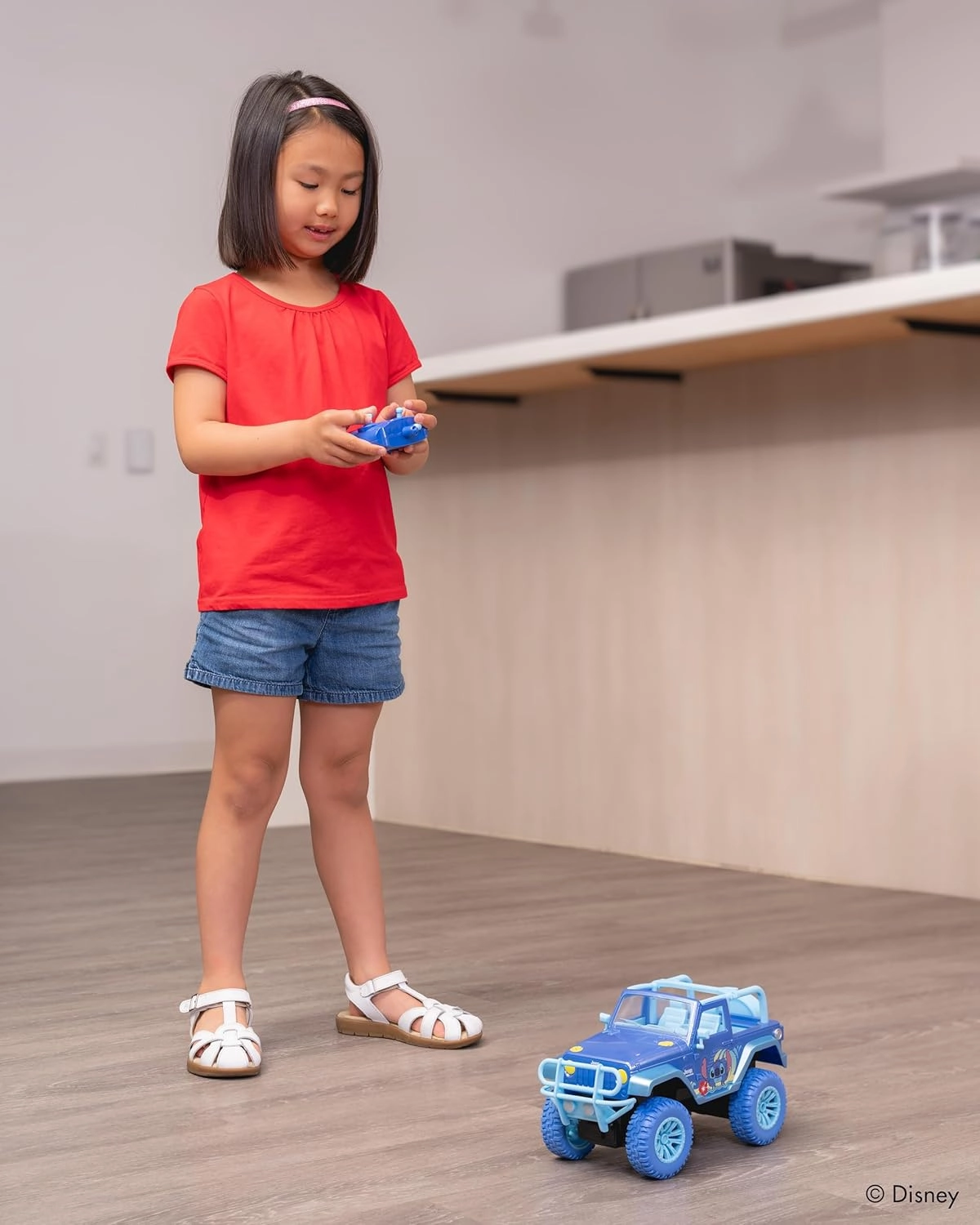 Het model in schaal 1:16 is ongeveer 29 cm lang, heeft verhoogde vering en uitgesproken spatborden. In de verpakking zitten een overzichtelijke controller en een stickervel voor het personaliseren van de look. Het perfecte cadeau voor fans van Lilo & Stitch en alle kinderen die houden van actievol rijden en creatief spelen.