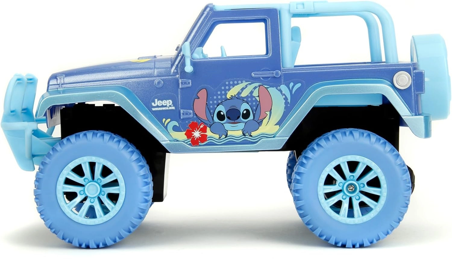 Het stijlvolle RC‑model Jeep Wrangler Stitch combineert de klassieke look van de legendarische Jeep met de vrolijke wereld van DISNEY. De carrosserie in intens turkoois‑blauw, prints met STITCH‑motieven en het massieve chassis geven de auto een aantrekkelijke offroad uitstraling. De grote wielen met diep profiel zorgen voor zekere grip op gladde oppervlakken in huis.