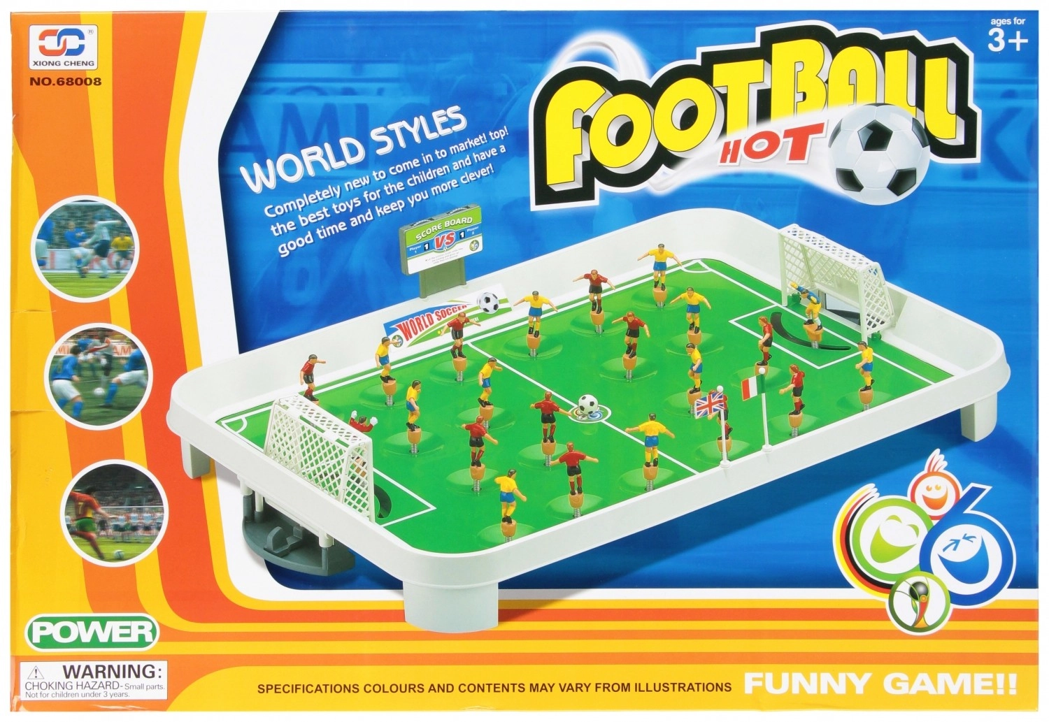 Een leuk tafelspel voor jonge voetbalfans dat dankzij beweegbare figuurtjes en eenvoudige bediening een wedstrijd realistisch simuleert. Bevordert coördinatie, behendigheid en fair play. Kleurrijke elementen motiveren kinderen om thuis en in groep te spelen. Inclusief speelveld, 22 spelersfiguurtjes, bal en accessoires. Geschikt vanaf 3 jaar.