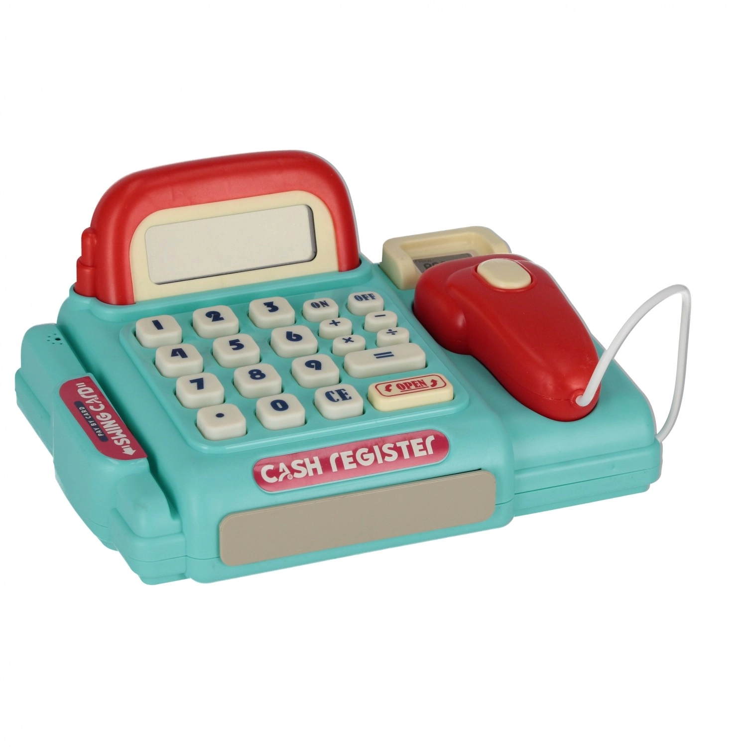 - Realistisch winkeltje spelen: scanner, kaartlezer en knoppen bootsen een echte kassa na.