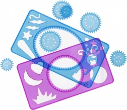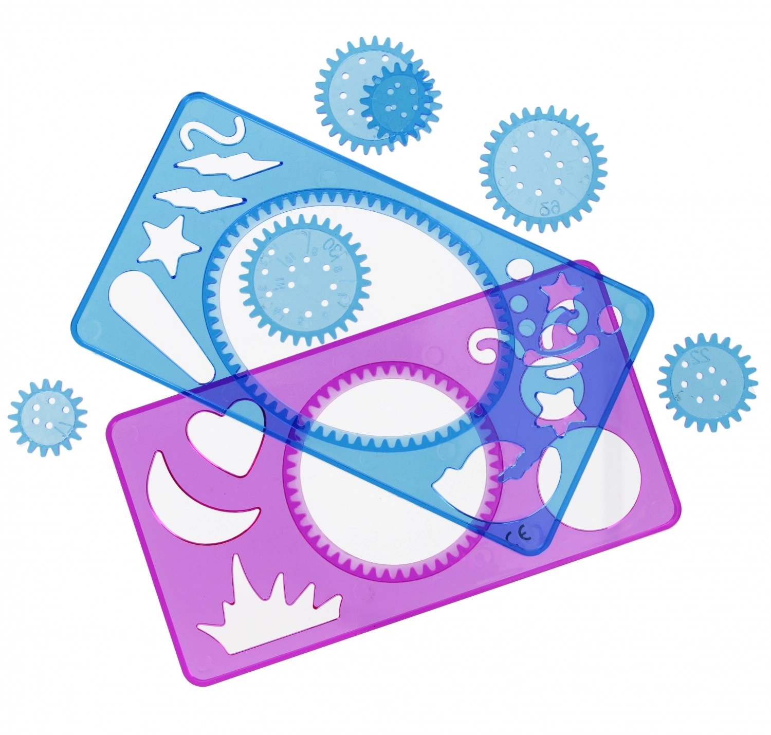 De verbeterde indeling van de sjablonen en extra wieltjes maken nog gevarieerdere geometrische en decoratieve motieven mogelijk voor kinderen en volwassenen.
