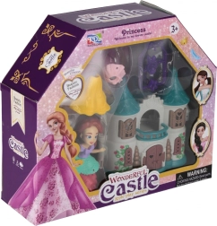 - Inhoud van de set: pop (ca. 8 cm), kasteel, reservejurkjes