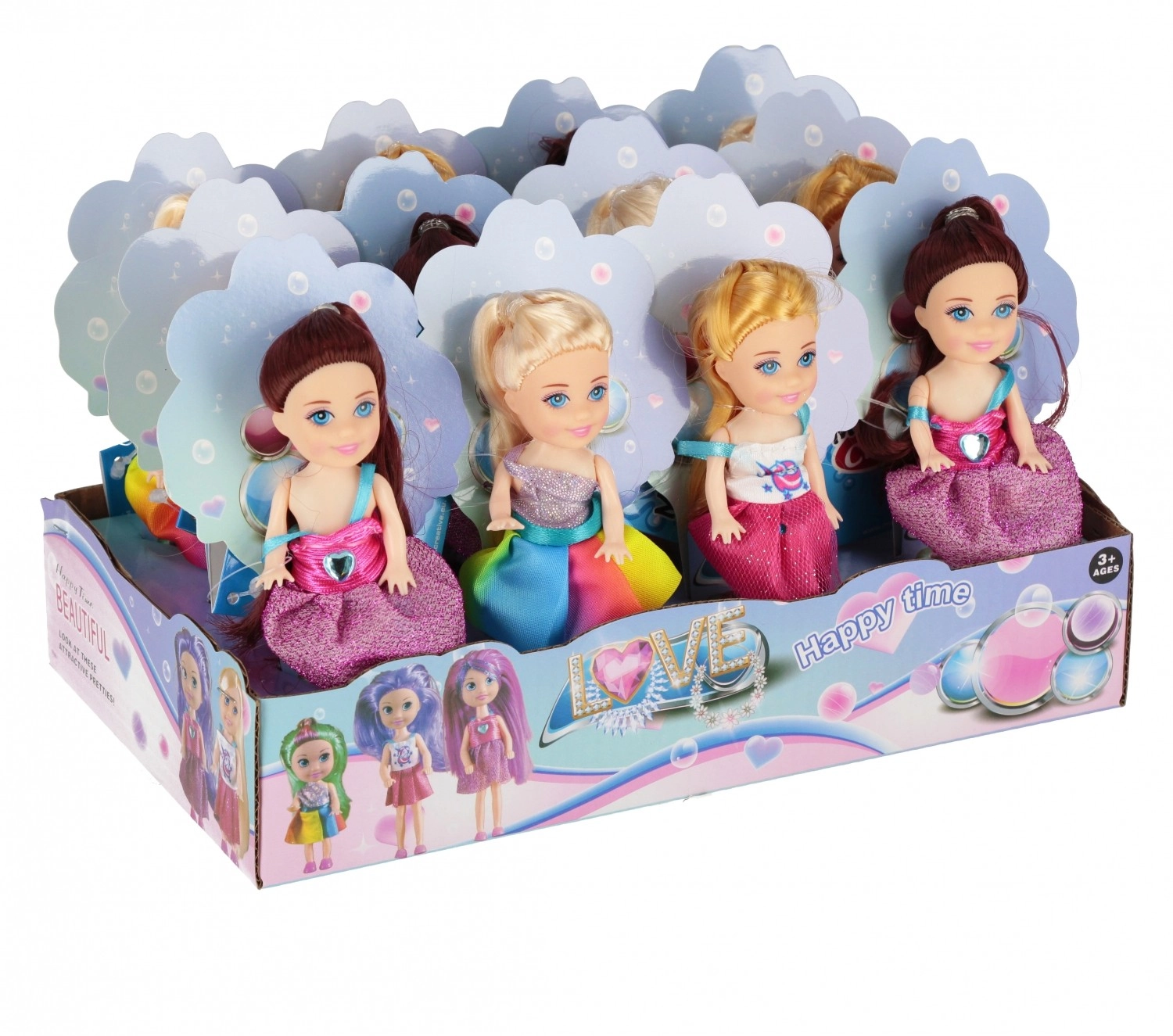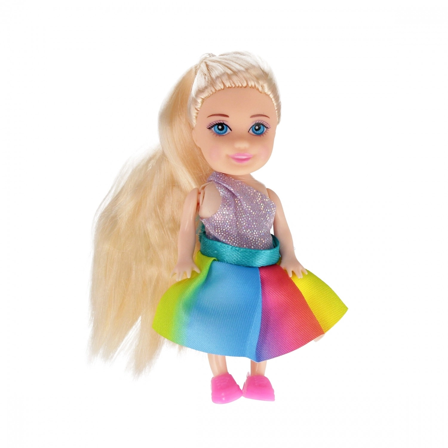 De mini-pop Rainbow verrukt kleine liefhebbers van mode en fantasierijk spel. Dankzij de hoogte van 10 cm past ze makkelijk in een rugzakje of zak en is zo de perfecte reisgenoot. Elke pop heeft anders op elkaar afgestemde jurkjes, schoentjes en accessoires, waardoor elk uitpakken een kleine verrassing is.