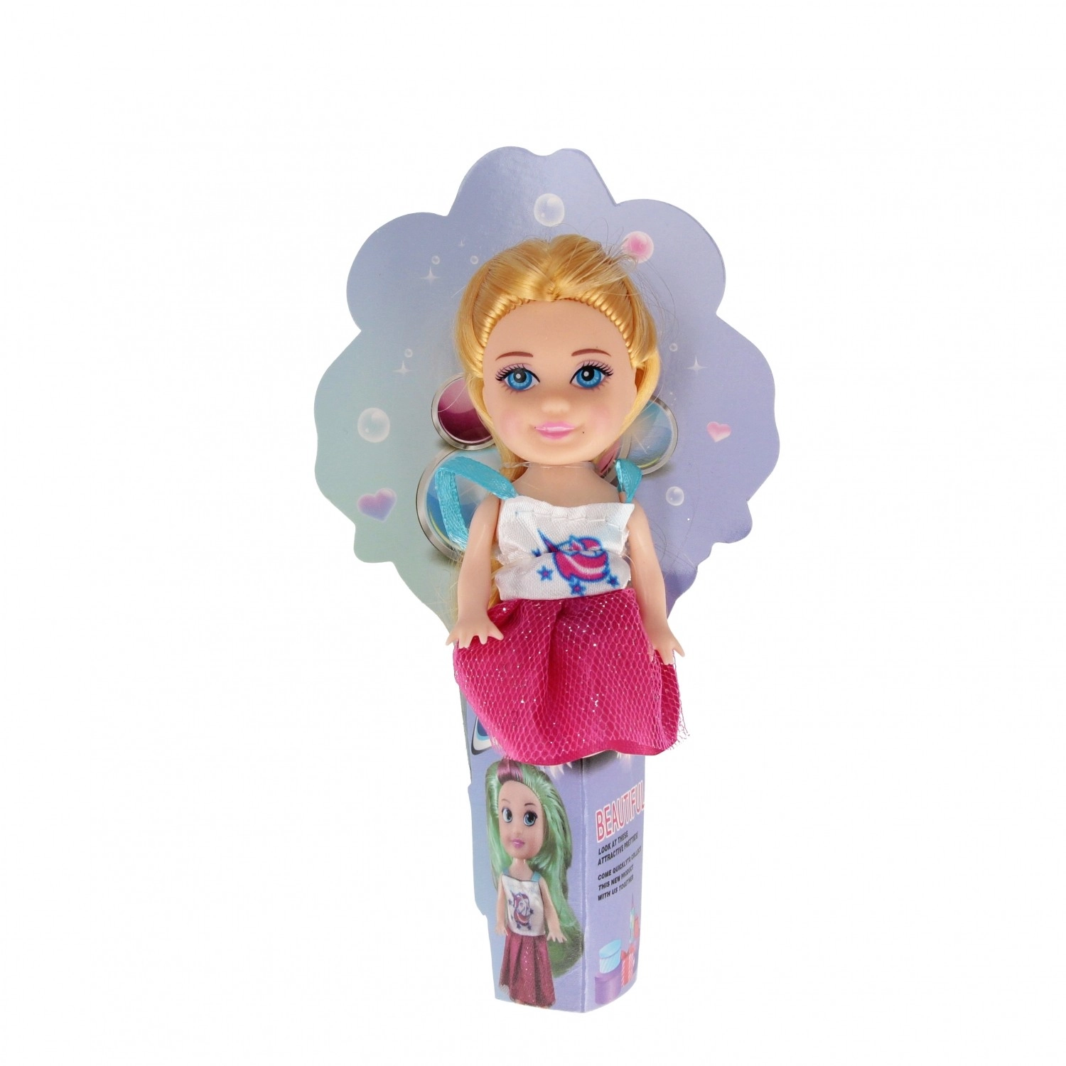 Schattige mini-pop van 10 cm voor dagelijks spelen en verzamelen. Elke pop heeft een anders gekleurde outfit, een compact formaat voor kleine handjes en stimuleert fantasie en creativiteit. Ideaal voor thuis, onderweg en op de kinderopvang. Mix van vier varianten – we verzenden willekeurig. Geschikt voor kinderen vanaf 3 jaar. Prijs per stuk.