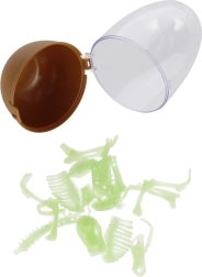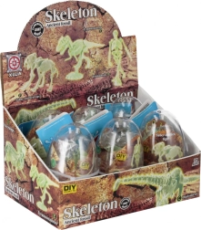De kleine componenten van stevig plastic zijn gevormd als realistische botten – van schedel en wervelkolom tot ledematen. Na opladen met licht gloeit het skelet spectaculair in het donker, wat een mysterieuze sfeer creëert en de verbeelding prikkelt. Perfect als cadeau, voor in een collectie of als speelse decoratie op de kinderkamer.
