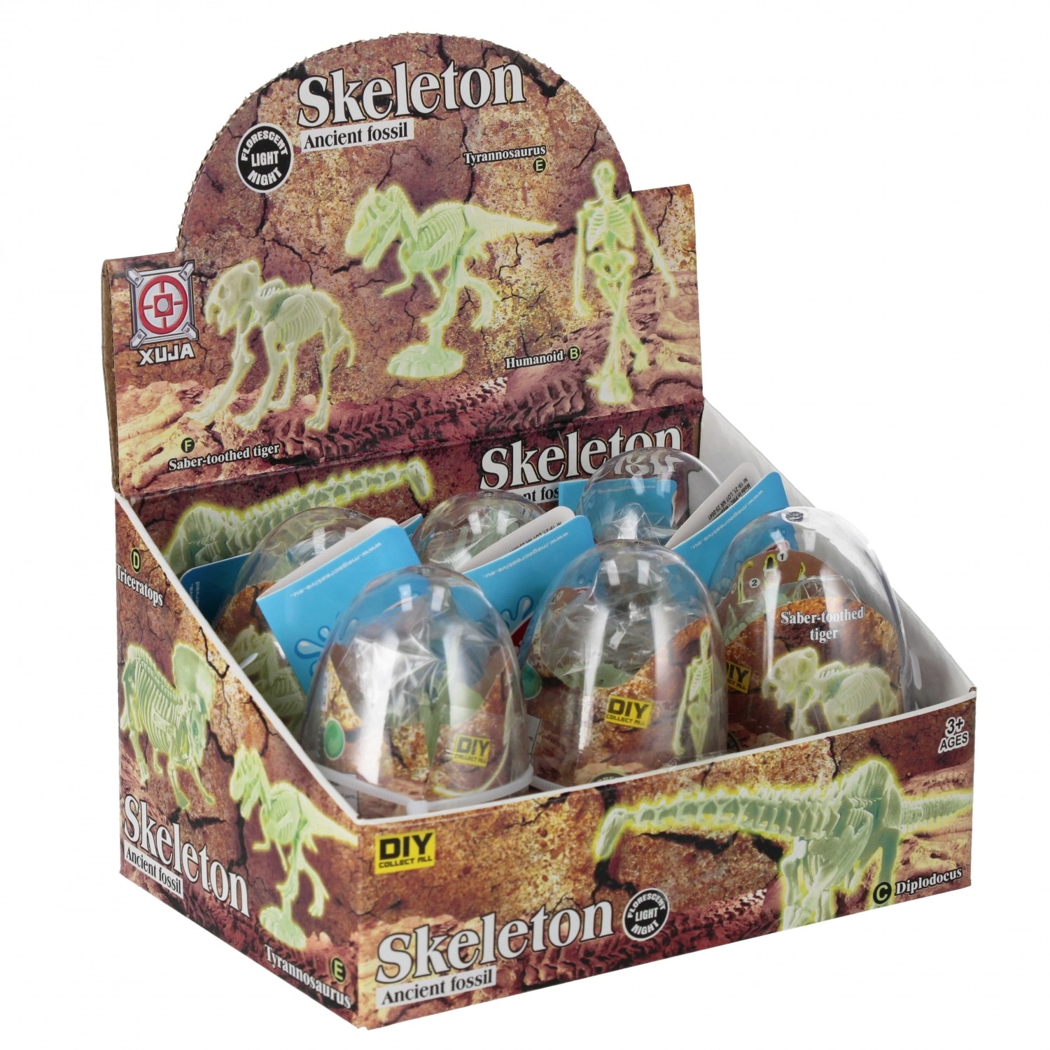 Het fluorescerende effect van het skelet brengt elk kinderavontuur tot leven. Even opladen met licht en kijk hoe het model na het donker gloeiert.
