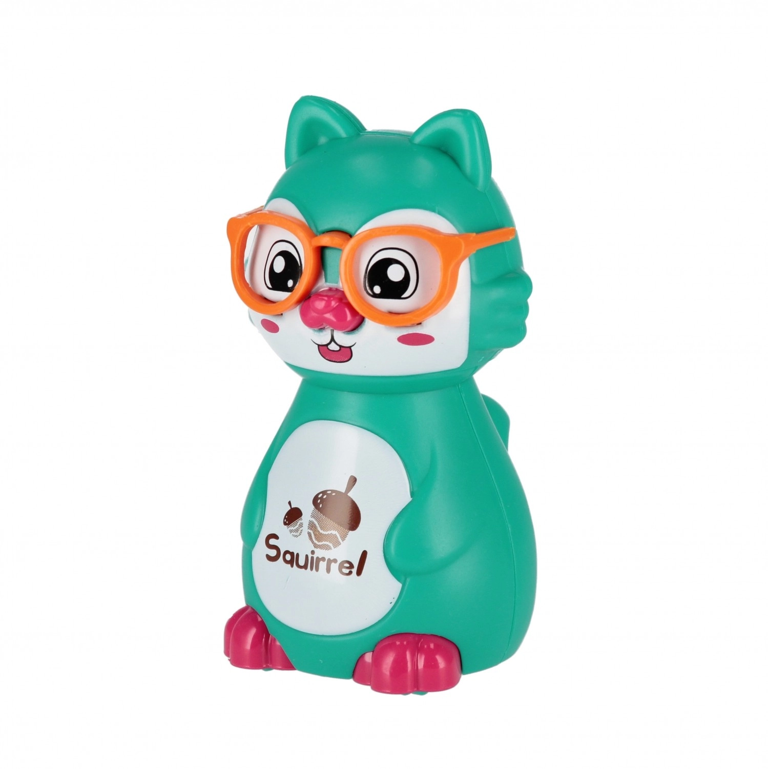 Het speelgoed heeft afgeronde randen en is gemaakt van duurzaam kunststof, waardoor het geschikt is voor dagelijks speelplezier. Het compacte formaat van 10 cm is handig voor thuis en onderweg. Er zijn 4 kleurvarianten die willekeurig worden verzonden (bijv. groen, turquoise, oranje, roze) met grappige brilletjes en de opdruk “Squirrel” met eikel.