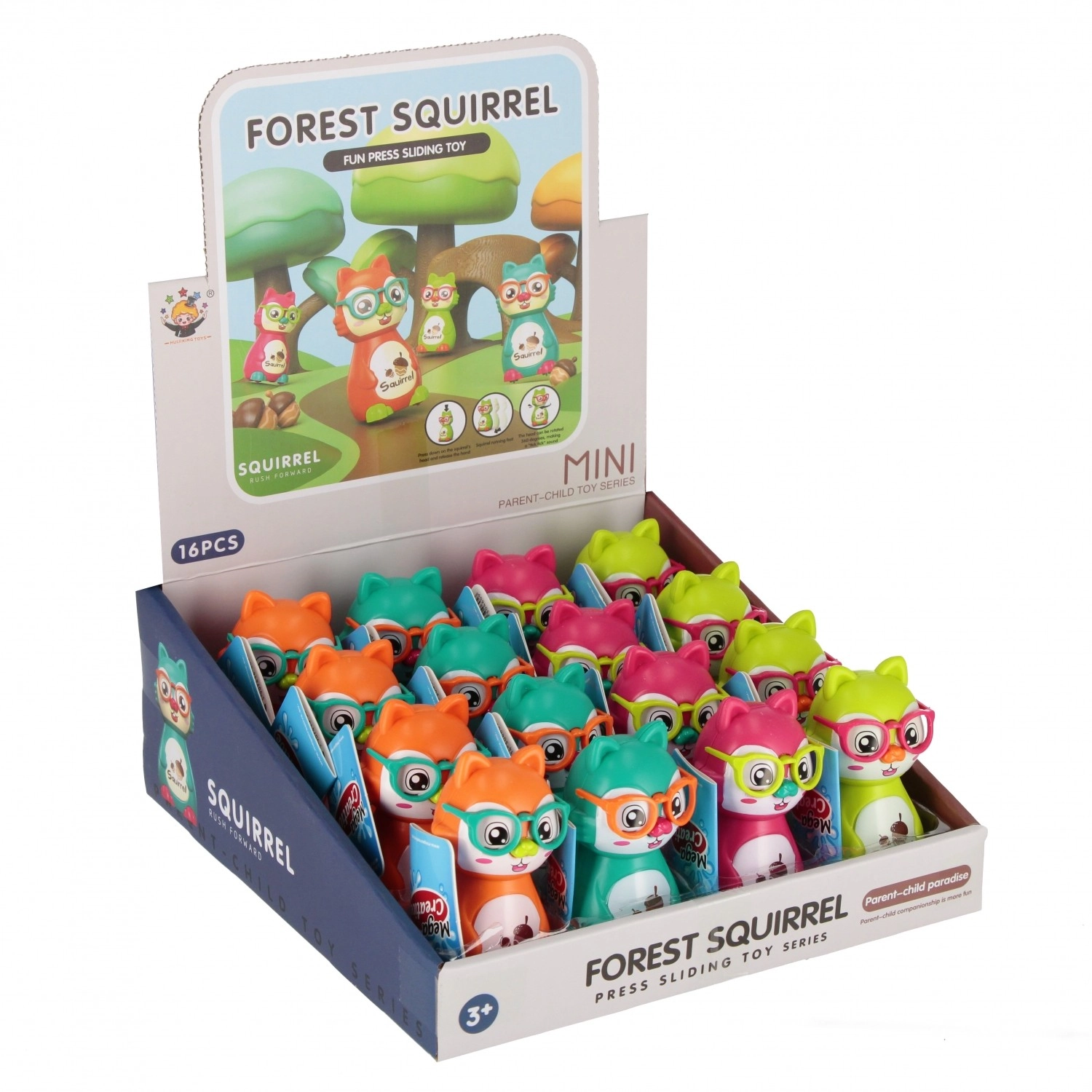 De leuke rijdende eekhoorn rijdt vanzelf naar voren zodra je hem indrukt en zorgt voor veel plezier bij kinderen. Dankzij het compacte formaat van 10 cm, de vrolijke kleuren en de veilige, afgeronde vormen is het een ideale speelgoedkeuze voor de kleintjes. Verkrijgbaar in vier kleurvarianten, willekeurig verzonden. Geschikt voor kinderen vanaf 3 jaar. Prijs per stuk.