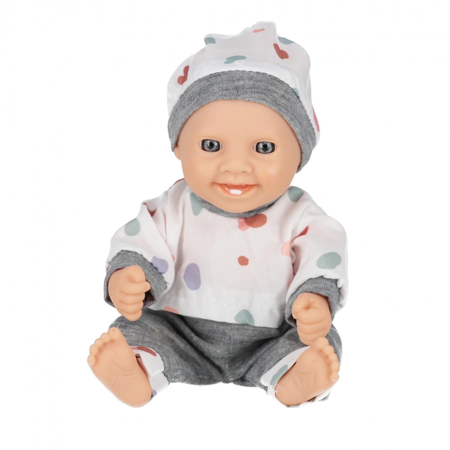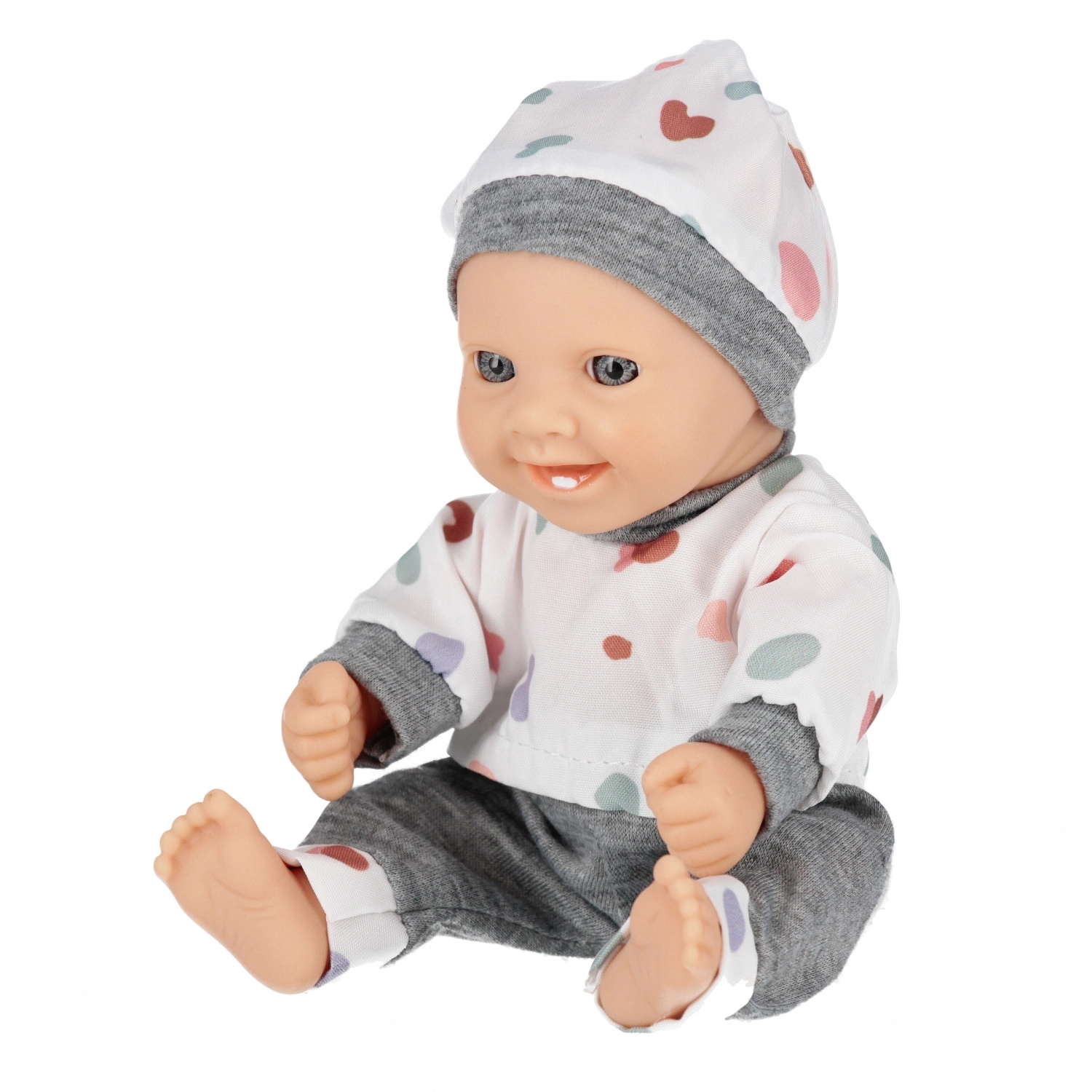 Deze schattige baby-pop is een geweldige speelkameraad voor elke dag. Dankzij het compacte formaat van 20 cm ligt hij goed in de hand, is hij makkelijk aan te kleden en ideaal om mee te nemen op reis. Het zachte textiele outfitje en de realistisch gevormde hoofdje, armen en benen ondersteunen natuurlijk rollenspel.