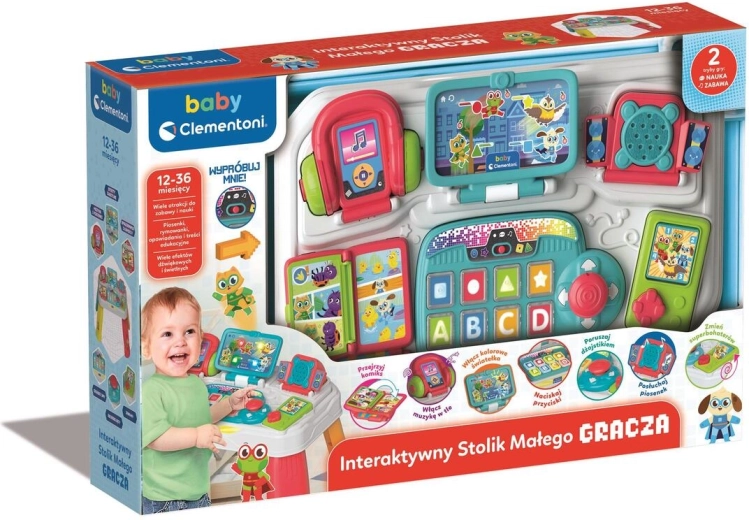 De interactieve tafel van CLEMENTONI is een geweldige metgezel voor de eerste ontdekkingen van de wereld. Hij biedt een breed scala aan activiteiten die kinderen op een natuurlijke manier motiveren om spelenderwijs te leren. Kinderen kunnen handelingen van volwassenen nabootsen dankzij “tech”-elementen zoals een scherm, koptelefoon, luidspreker en controller, en zo zowel sociale als cognitieve vaardigheden ontwikkelen.